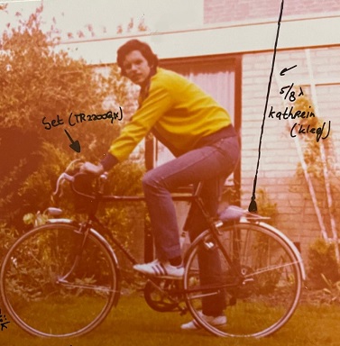 In die tijd (1977-1981) was ik vaak /FM Fiets Mobiel. De TR-2200GX voor op het stuur in een zelf gemaakt leren tasje en achterop de bagagedrager een Kathrein 5/8 kleefvoet antenne. Ik heb hier geweldige ervaringen mee gehad ook toen ik helemaal van Voorburg naar Assen fietste en onderweg verschillende verbindingen kon maken met ander D amateurs. Het was toen gewoon nog druk aan de band 🙂