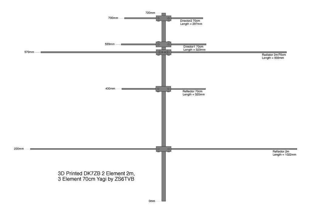 The search quickly produced several results. In addition to references to the original designer of the antenna, DK7ZB, I found a drawing with the exact dimensions and several mounting bracket designs. I even found one that included the SCAD files. This gave me the opportunity to make small modifications, such as adapting the brackets for a 19 mm boom diameter, reducing the size, and simplifying the overall design.