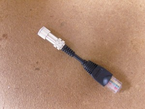Eventueel kan ik ook nog mijn Heil Koptelefoon met iC element gebruiken. Daarvoor is er een klein verloopsnoertje gemaakt. NB: In de 3,5mm contra plug zit een 5k6 weerstand van de +5V ader vanuit de RJ45 connector naar de hete kant van de microfoon. De iC is namelijk een electret kapsel.