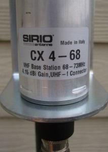 Omdat ik geen tijd heb om zelf te gaan zagen heb ik een commercieel type gekocht van het merk Sirio met typenummer CX 4-68 (op diverse sites als goed beoordeeld). De dipool er dus af en de fietspomp erop. Naar beneden, SWR meten, op 70.000MHz 1:1,3 en op 70.500MHz 1:1,5 dus antenne inkorten met een stelschroef, nog een keer meten en voilà 1:1. Een prima solide antenne moet ik zeggen en niet extreem duur (zie de bovengenoemde webwinkel of gewoon even goooogelen).
