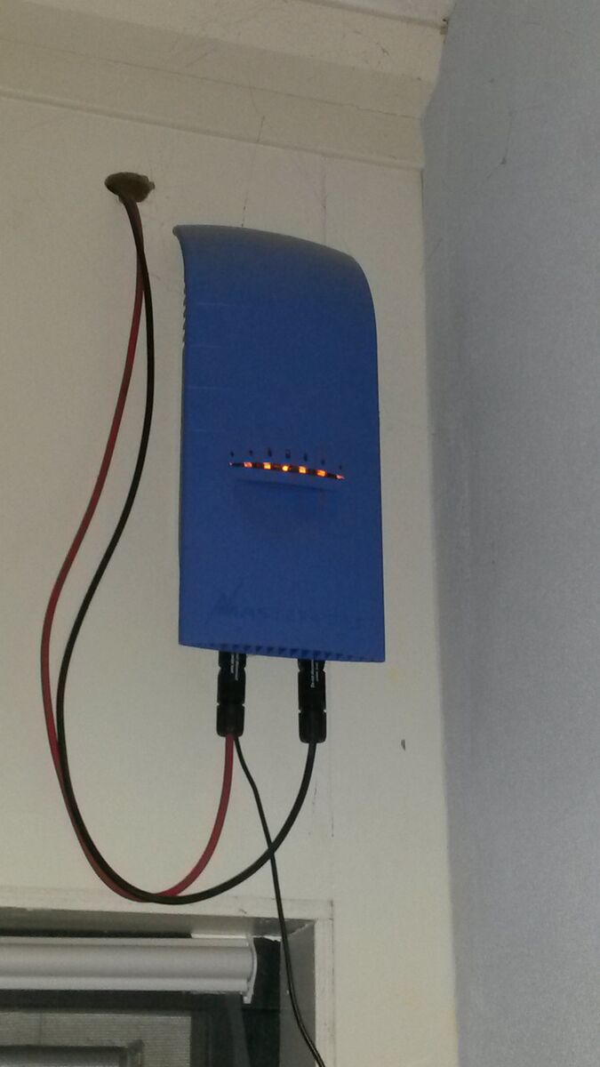De omvormer is van het merk Mastervolt en bevind zich volledig in een plastic behuizing. Geen aardedraad en daarbij zijn er ook nog maar slechts 3 zonnepanelen aangesloten. Super jammer want er is dus weinig opbrengst maar wel maximale storing. Snel maar eens op internet gezocht naar referenties. En ja hoor op deze website is een hele verhandeling te vinden waarbij naar aanleiding van de Mastervolt Soladin 600 Inverter RF Interference de unit opnieuw is ingebouwd in een metalen behuizing met daarbij nog de nodige afscherming en filtering. Lijkt me een gevalletje berusting, want ik ga niet investeren in het ontstoren. We zouden hooguit de leverancier kunnen aanspreken.